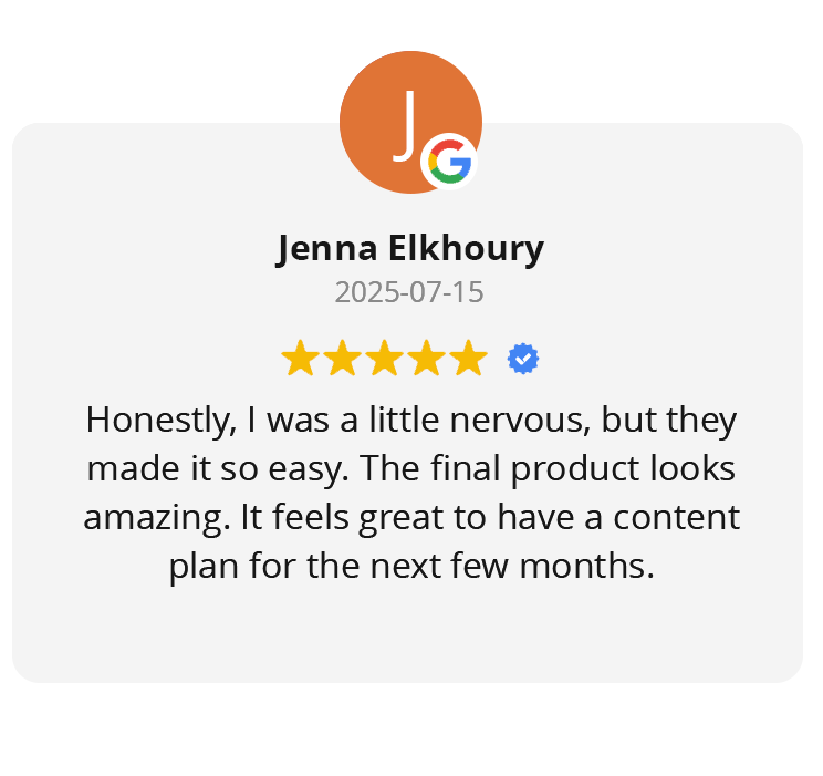 If social media is part of your business growth strategy and you want a professional, simple way to consistently share your brand story without the constant grind, our one-day filming package is the perfect fit. It’s designed to free you from the content creation cycle and give you the peace of mind that comes with a full library of high-quality videos, ready to go.